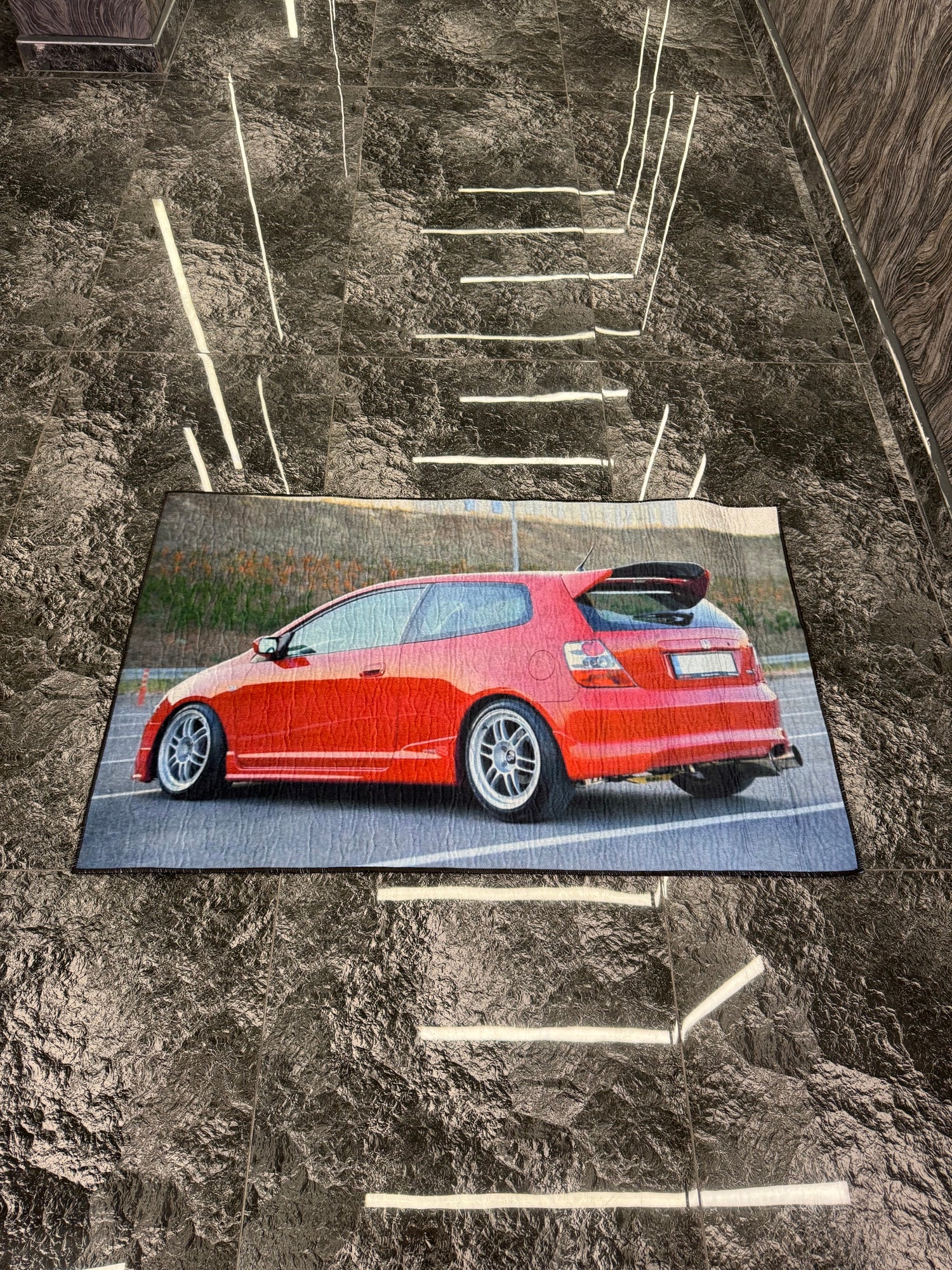 Kendi aracının tasarımıyla hazırlanan bu özel halı, sıradan bir hediye değil; kişisel ve unutulmaz bir detaydır.