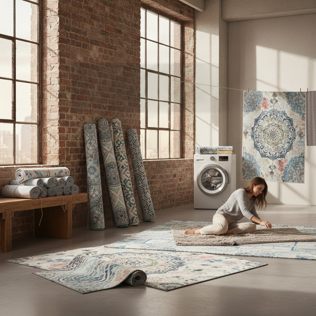 SerraHalı halılar, makinede yıkanabilir özelliği sayesinde zahmetsiz temizlik sunar. Hassas program ve düşük devirle yıkandığında formunu bozmaz, renklerini uzun süre muhafaza eder.